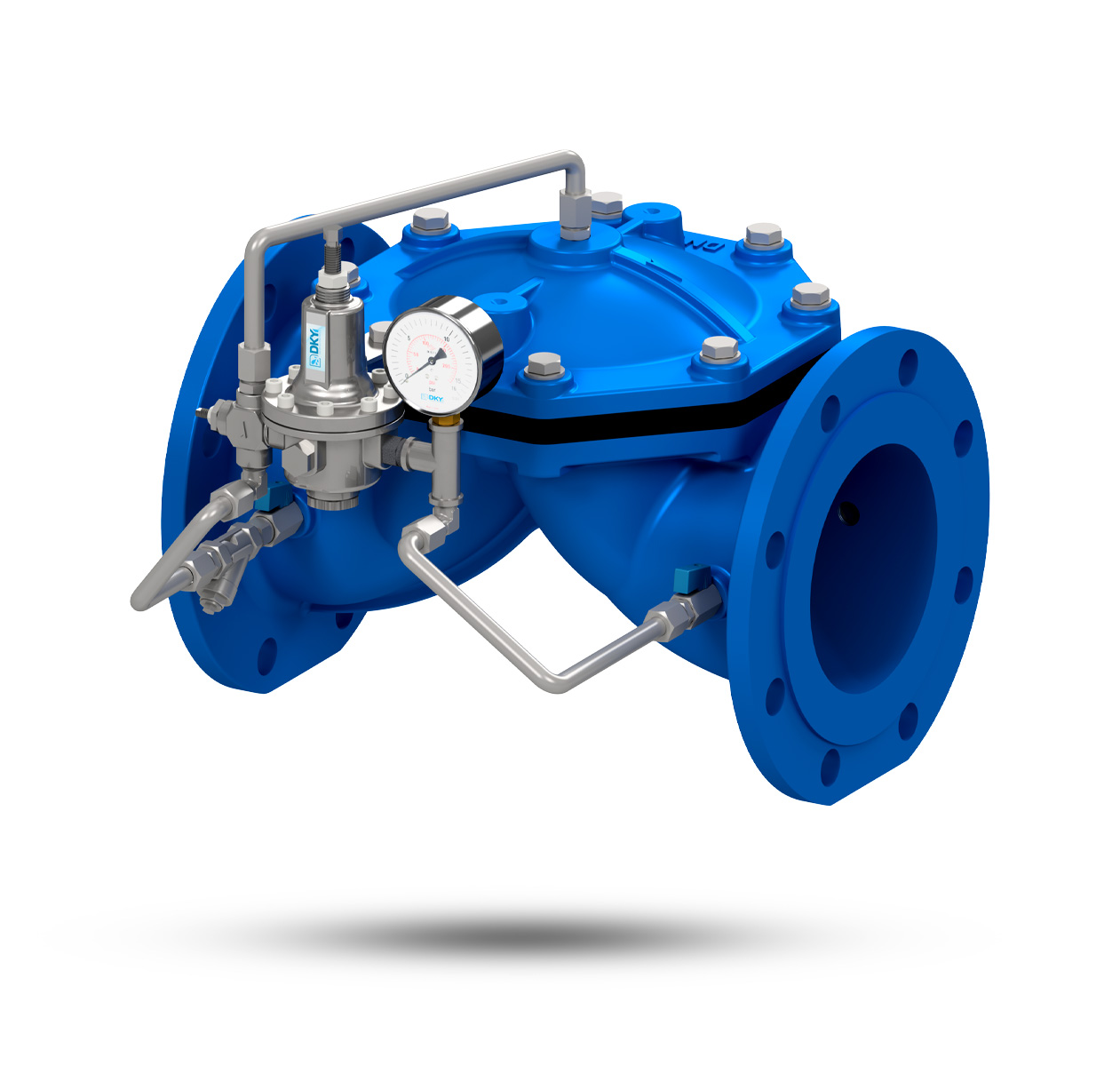 Hydraulic Control Valves are used on the purpose of on/ off and regulation, utilizing the pressure of the working fluid flowing through itself as the source of actuating energy. The mechanical part acting as actuator is a diaphragm or a piston, having an effective area larger than the port of the valve. This larger actuator area difference produces bigger control forces than required to close the valve, stopping the flow to the zeroflow condition. The actuator pressure is adjusted by so called control pilots sometimes more than one to control the valve in any position varying continuously.